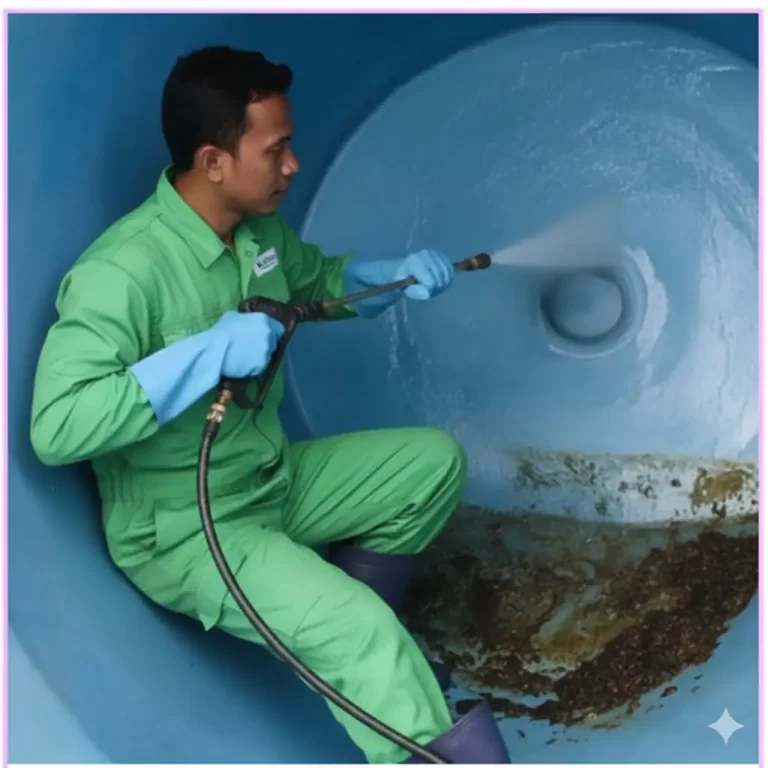 Membersihkan tangki air dari endapan dan kotoran yang memengaruhi kesehatan. Metode higienis memastikan air selalu bersih, terhindar dari sumbatan.